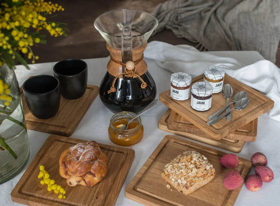 JHC Design utvikler og designer produkter i tre, ofte i kombinasjon med andre materialer. Et av de mest populære produktene er tallerkensettet med 6 stk. tretallerkener i stativ. Disse ble produsert allerede i 1990, men da i furu som var inn på den tiden. Les mer.
